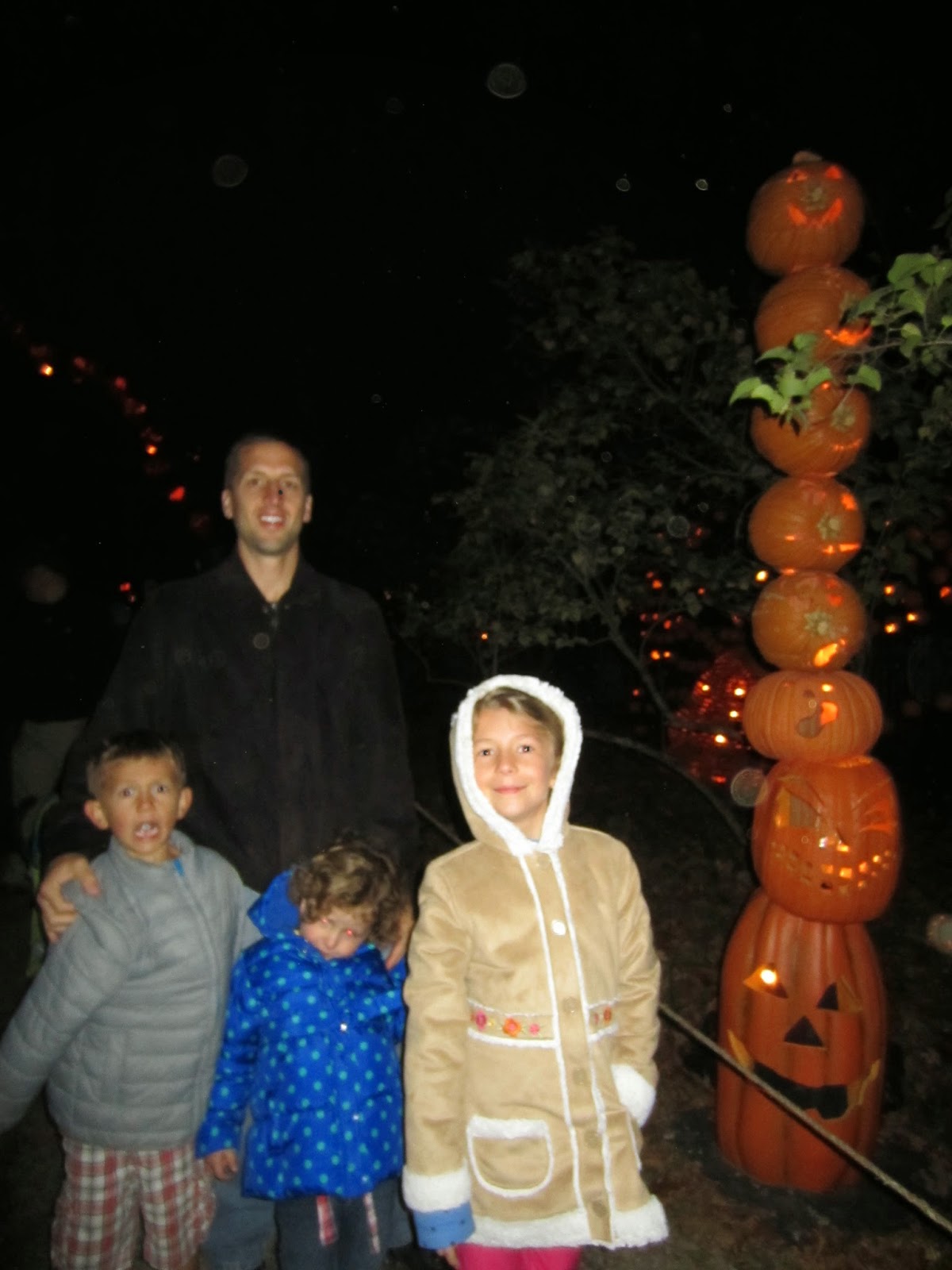 Monday after school we made a little trip up to Sleepy Hollow, NY for the "BLAZE." I had wanted to do this for years after hearing rave reviews from friends and articles. The tickets sell out quickly. Even reserving them a month in advance the weekends were already gone. The kids thought it was pretty cool. There were a couple of sections with skeletons, spiders, zombies and scary music that got Rachie pretty spooked though.